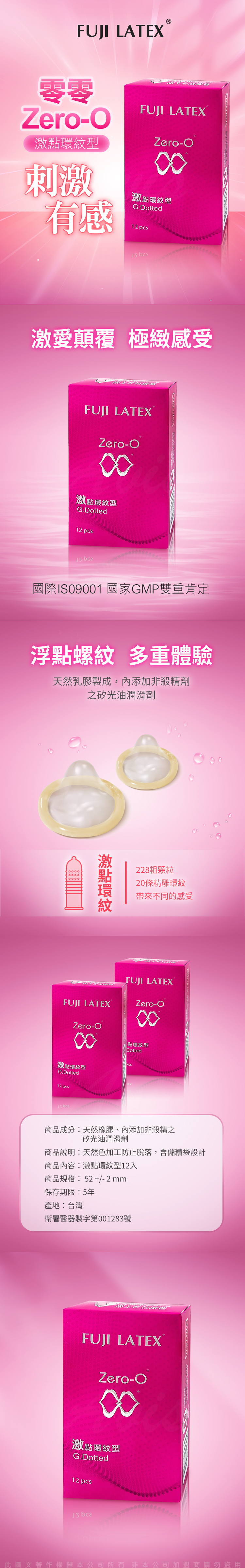 品名:ZERO-0 零零系列|FUJI LATEX 衛生套 保險套|激點環紋型 12入
