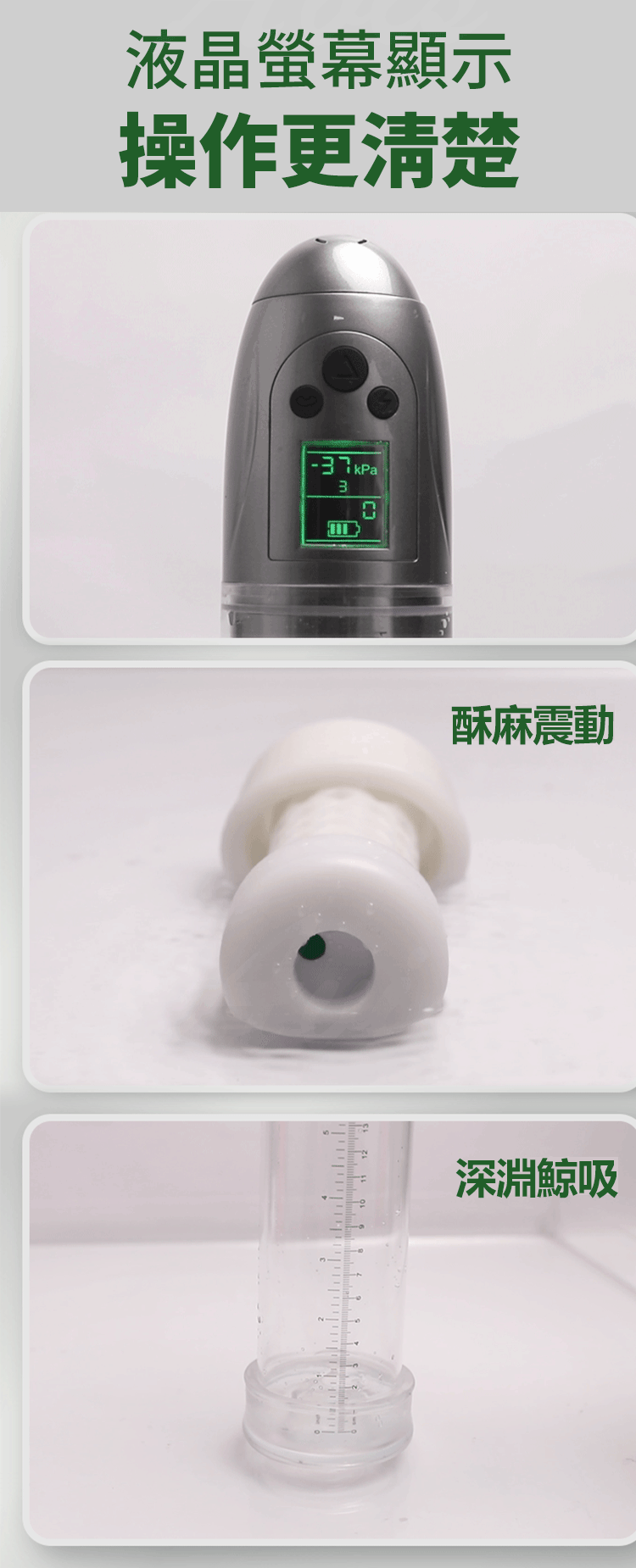 - 猛吸怒震:真空夾吸配合震動訓練,讓快感層層遞進。