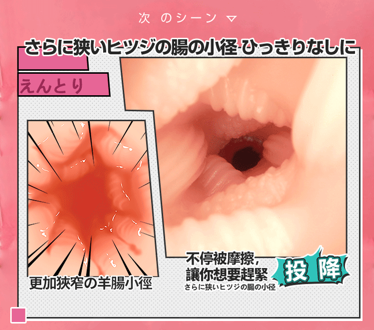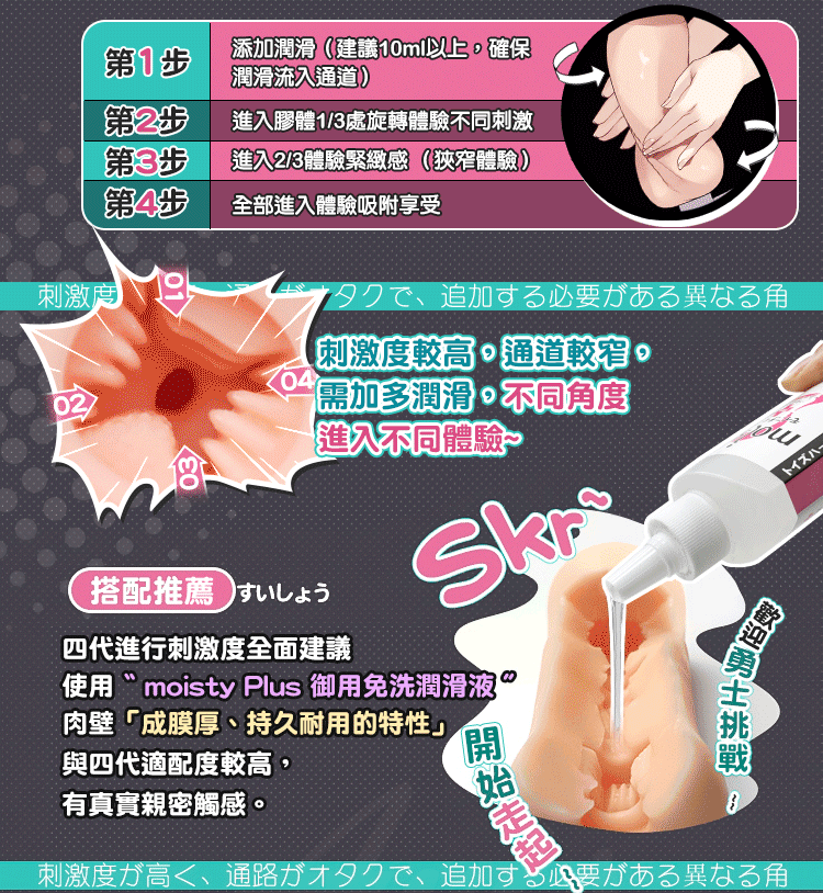 緊致吸吮感 + 空腔吸附構造 + 微顆粒肉點刺激,讓你慢慢品嚐每一次深入的快感